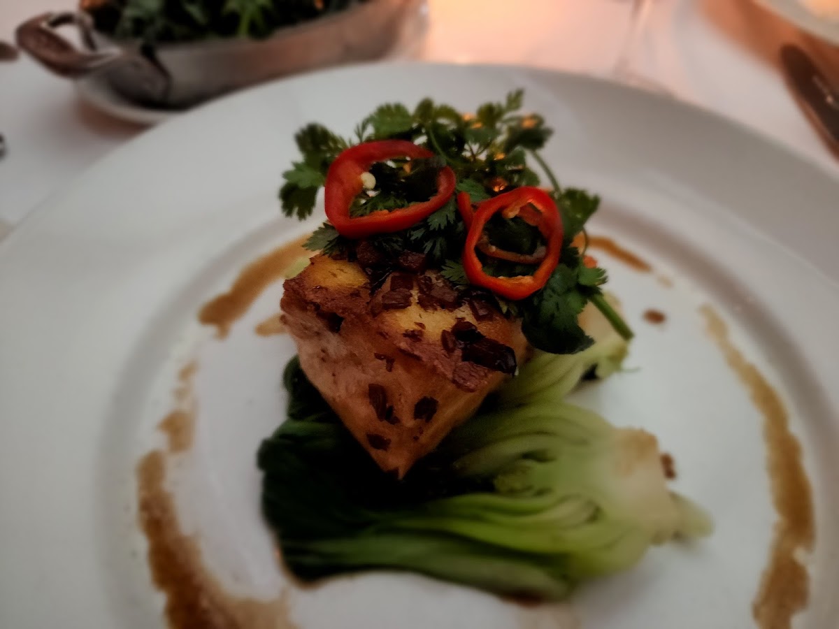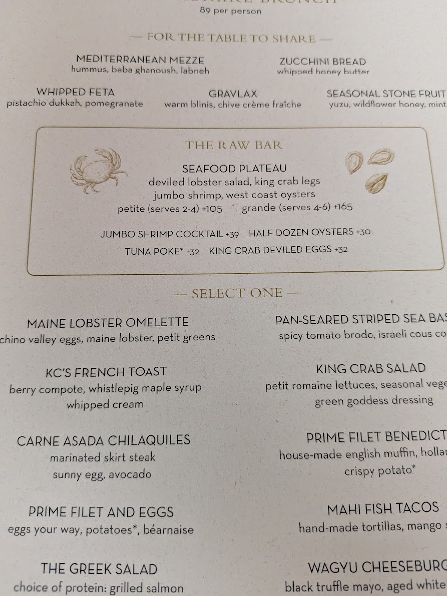 When it comes to the entrees, prepare for an extravagant treat with the Dover Sole at $79, served with sautéed vegetables that perfectly complement the fish's delicate flavors. Or savor the Pan-Roasted Salmon, elegantly paired with English pea risotto and citrus beurre blanc for $48, a dish that balances richness with freshness. For a rustic comfort food option, the Half Roasted Mary's Chicken for $41 is not to be missed, served alongside spinach and mushrooms that add earthiness to the meal.