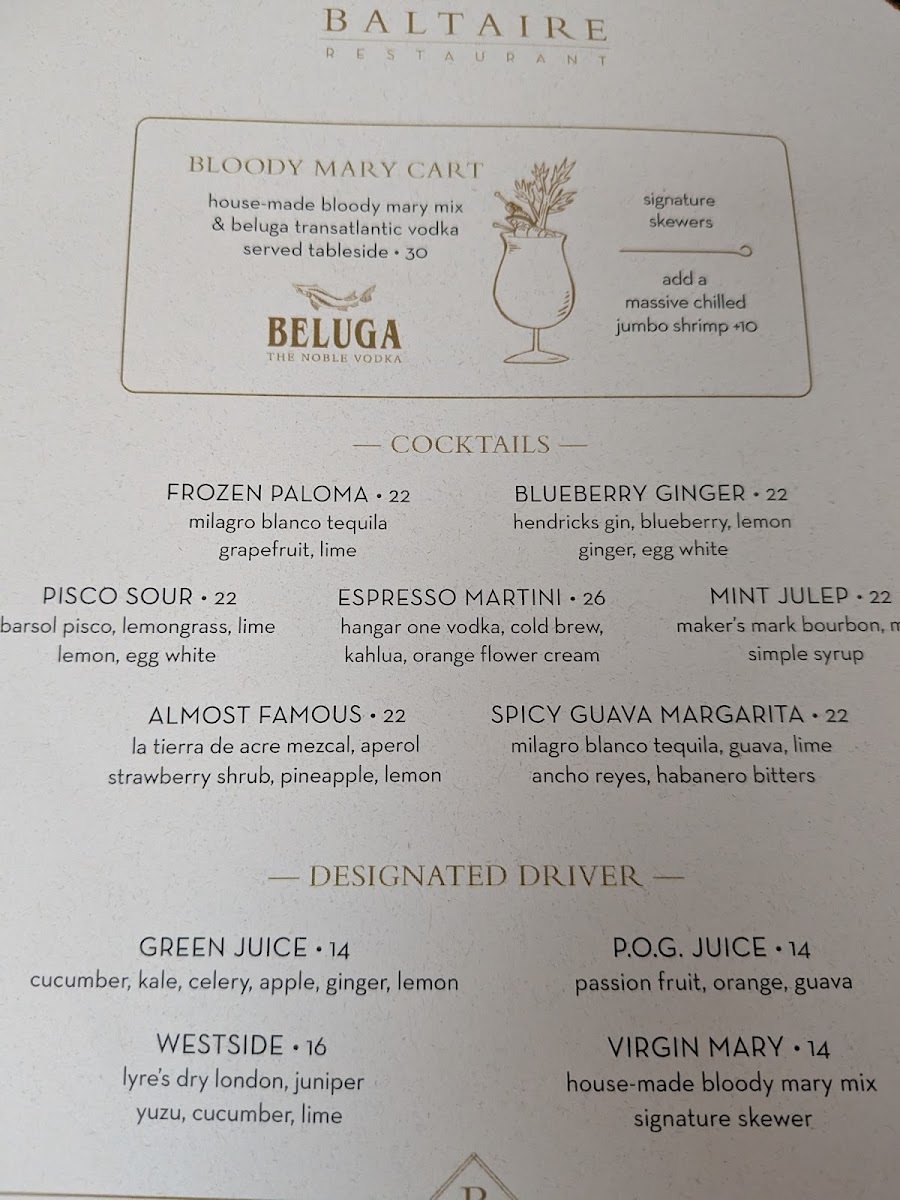 With numerous positive reviews echoing the quality of service and food, it’s clear that the team at Baltaire takes pride in offering a five-star experience. One delighted customer shares, “This is one of the best brunches I’ve had in LA! The clublike vibes, incredible food quality, and attentive service made for an unforgettable outing.” Another guest echoes this sentiment, emphasizing the exceptional drinks and highly recommend ordering the coveted cinnamon roll early to ensure you don’t miss out!